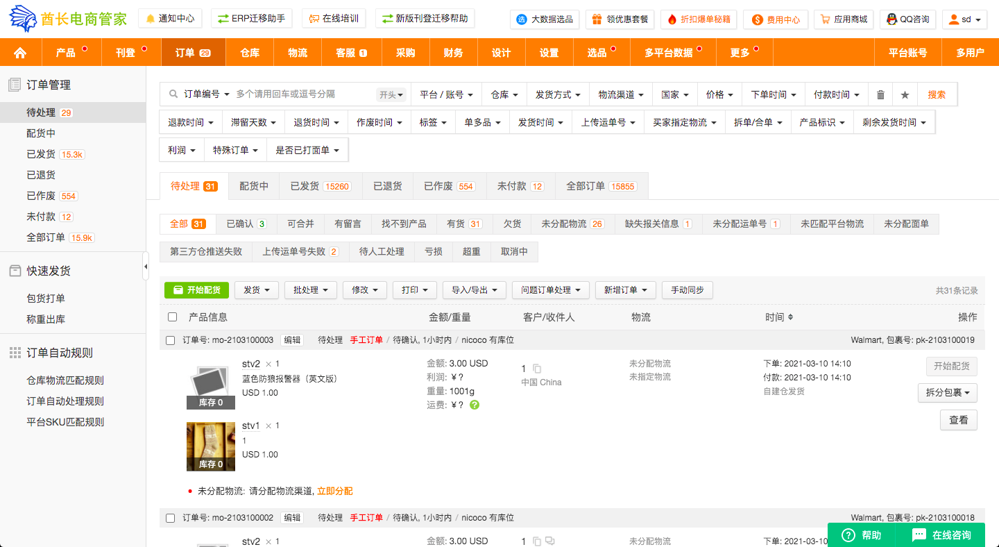 为数据、刊登、订单、客服、仓库等各个模块设计了完整清晰的权限