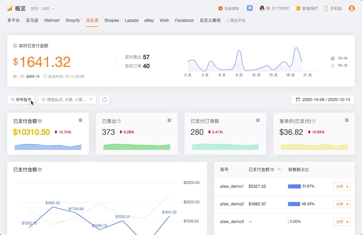多平台多店铺 运营分析 团队绩效分析 广告分析 自动调价 数据驾驶舱