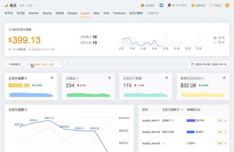 一手掌握各大平台多账户即时销售和账户情况