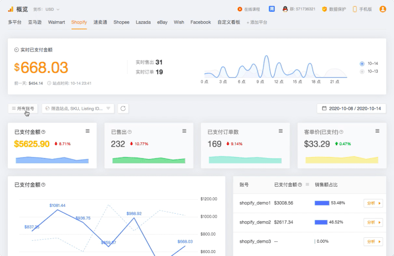 多平台多店铺 运营分析 团队绩效分析 广告分析 自动调价 数据驾驶舱