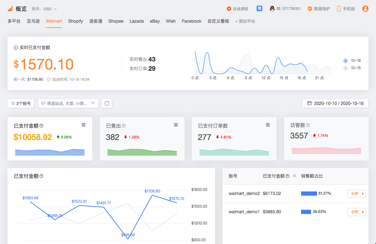 多平台多店铺 运营分析 团队绩效分析 广告分析 自动调价 数据驾驶舱