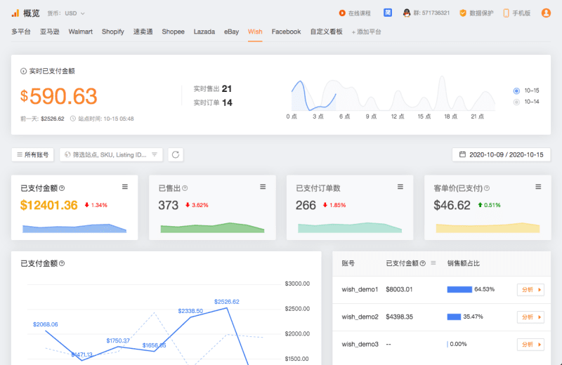 一手掌握各大平台多账户即时销售和账户情况